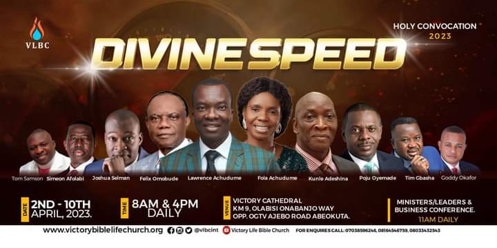 The Annual Mega Assembly -2023 Holy Convocation of Victory Life Bible Church commences from 2nd to 10th of April, 2023, at the church auditorium at KLM 9, Olabisi Onabanjo Way, opposite OGTV, Ajebo Road, Abeokuta.